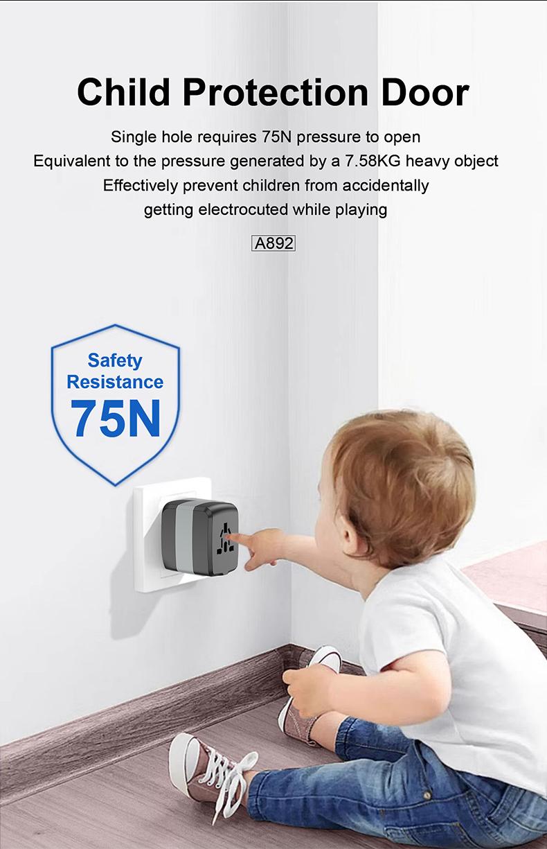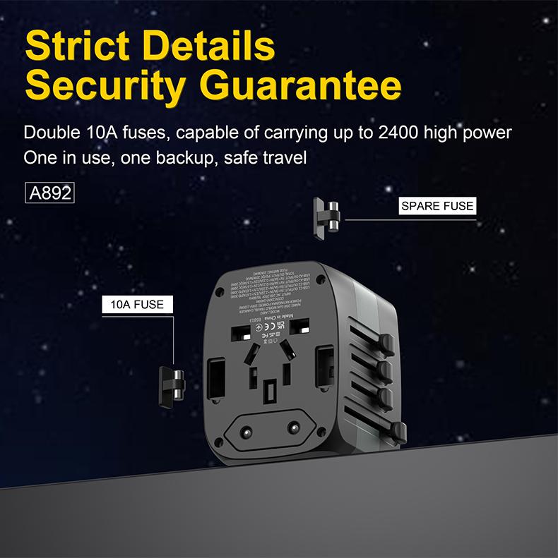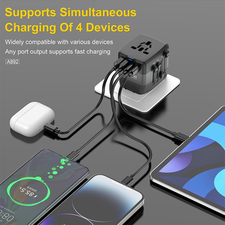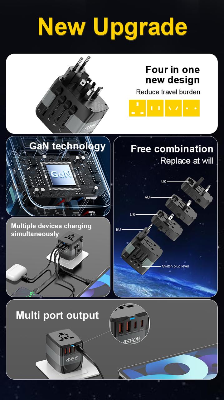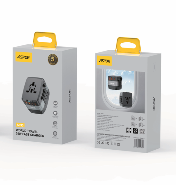 استمتع بالشحن السريع وآمن أثناء سفرك مع ASPOR A893 ، الشاحن العالمي ليتوافق مع جميع المقابس حول العالم.